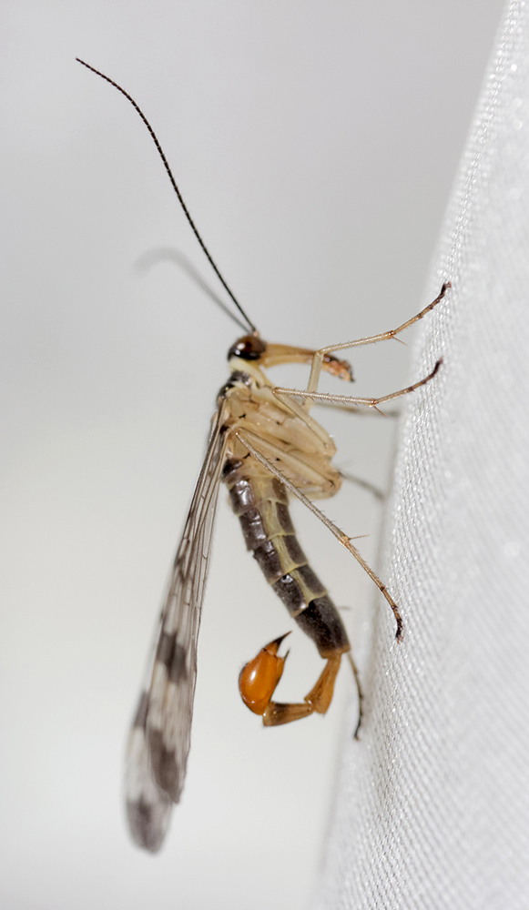 Скорпионница или скорпионовая муха (Panorpa communis). Судя по "хвосту", это самец (у самки нет клешней).