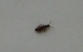 Вс 07/21/13 by KVAПервый, похоже, суринамский мукоед (Oryzaephilus surinamensisi) - вредитель зерновых запасов, муки. А второй... Кто-то из двукрылых. Возможно, представитель Sciaridae - личинки их живут в горшках с комнатными растениями, иногда подгрызают корни.