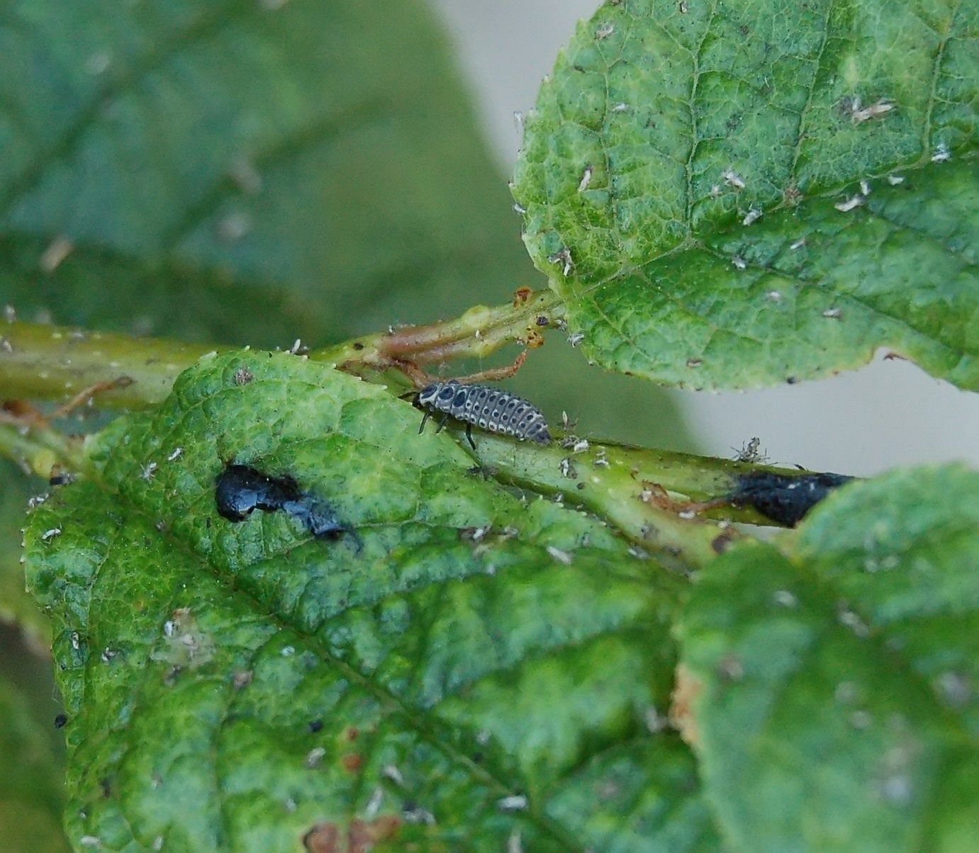 Во дворе растет черемуха. Каждый год ее оккупирует тля, которых доят муравьи. В этом году случайно вдруг заметил, что тля и муравьи пропали. Вместо тли на каждой веточки сидело это насекомое.Вместо тли осталась "шкурка" и обгрызанная черемуха