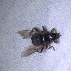 Помогите, пожалуйста, опознать муху. Повстречались с ней 9 сентября 2015 года в Москве, в городской квартире. Ползла по одежде. Длина где-то 7-8 мм, цвет серо-коричневый. По виду чем-то напоминает лосиную блоху, но в отличие от нее, не такая цепкая. Удалось легко снять с одежды салфеткой и раздавить.