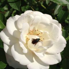 Жук среднего размера, с колорадского, коричневый, золотисто-коричневый. Шустрый, верткий. Летают по всему саду, жужжат...Их очень много, забили все цветы роз, особенно белых, на клубнике их просто сотни, не знаю, что делать. Клубника уже с ягодами, травить нельзя...Знатоки, определите, пожалуйста, ЧТО ЗА НАСЕКОМОЕ!!!
