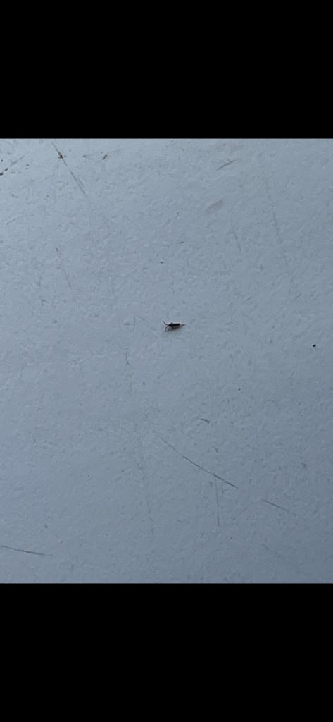 Помогите разобраться что за насекомое, длинные усы, и как бы чтоли маленький хвостик сзади, очень мелкое миллиметров 2 в длину. На фото он мертвый так как надышался химии которой травили мы недавно квартиру. Но кто это? Нахожу уже 3 й раз на подоконнике, и 1 раз в ванной. Безопасен ли он для человека?