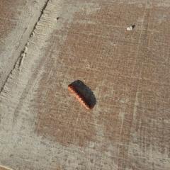Была найдена на пляже. Воронежская область. Рядом растет дуб и липа. Длиной около 10 см. толщиной около 1 см. Без волосяного покрова. Мощные черные челюсти. Спина темно-коричневая. Бока красноватые. Пузо желтоватое. Ползла в сторону водоема.