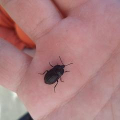Найден в июне. Под пнём. Весь чёрный. Под надкрыльями имеются очень маленькие крылья. На 1 фото спиной вверх. На 2 спиной вниз.