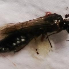 1,8 см в длину, крылья 1 см, жало, рыжие лапки, тёмное брюшко с белыми вкраплениями. Нашли в общем коридоре, уже третий за неделю, сидел около нашей двери, как и предыдущие. Никогда раньше не было. Откуда они?